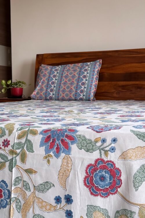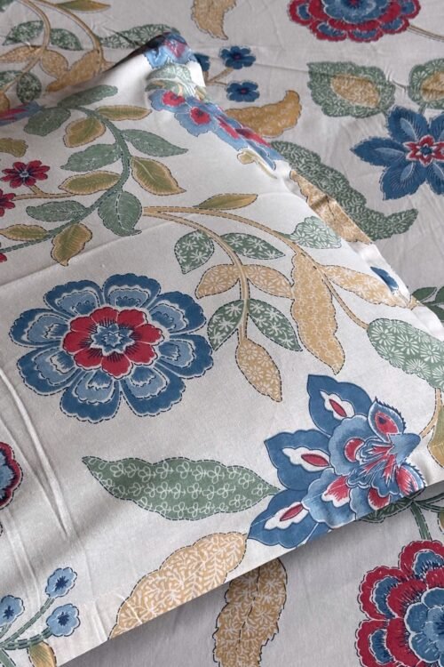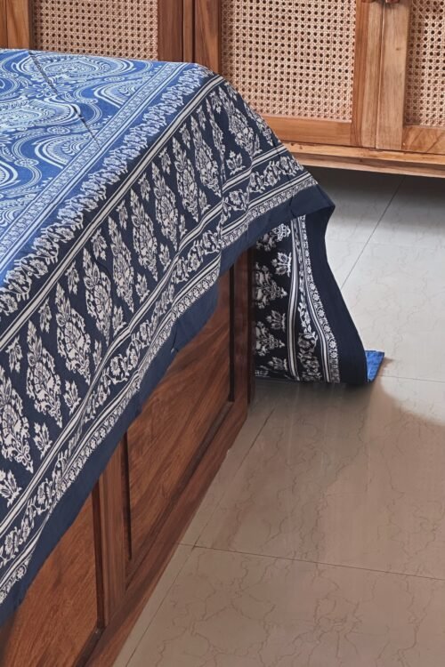 Blue Bouquet Handblocked Cotton Quilted Bedcover