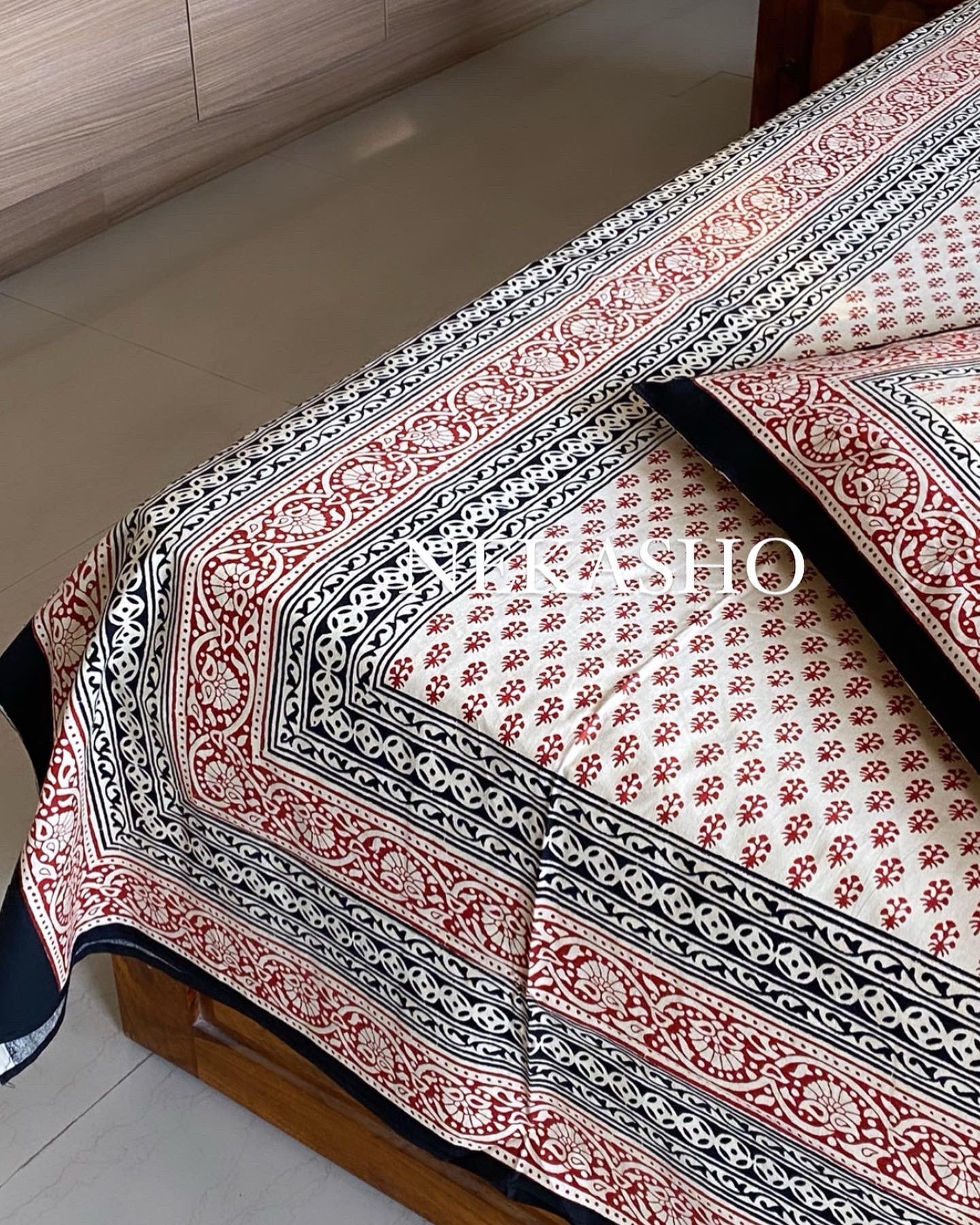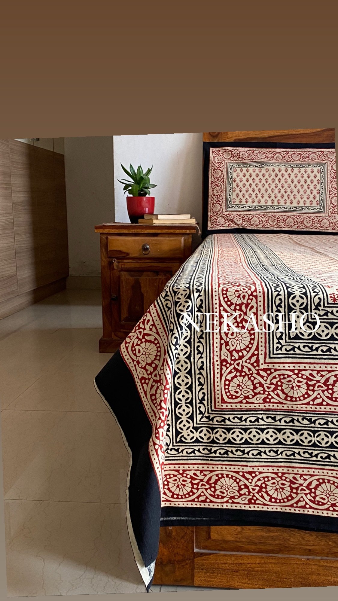 Bagru prints are traditional hand-block designs from Rajasthan, crafted with natural dyes. They bring timeless ethnic charm while offering breathable comfort in pure cotton bedsheet.