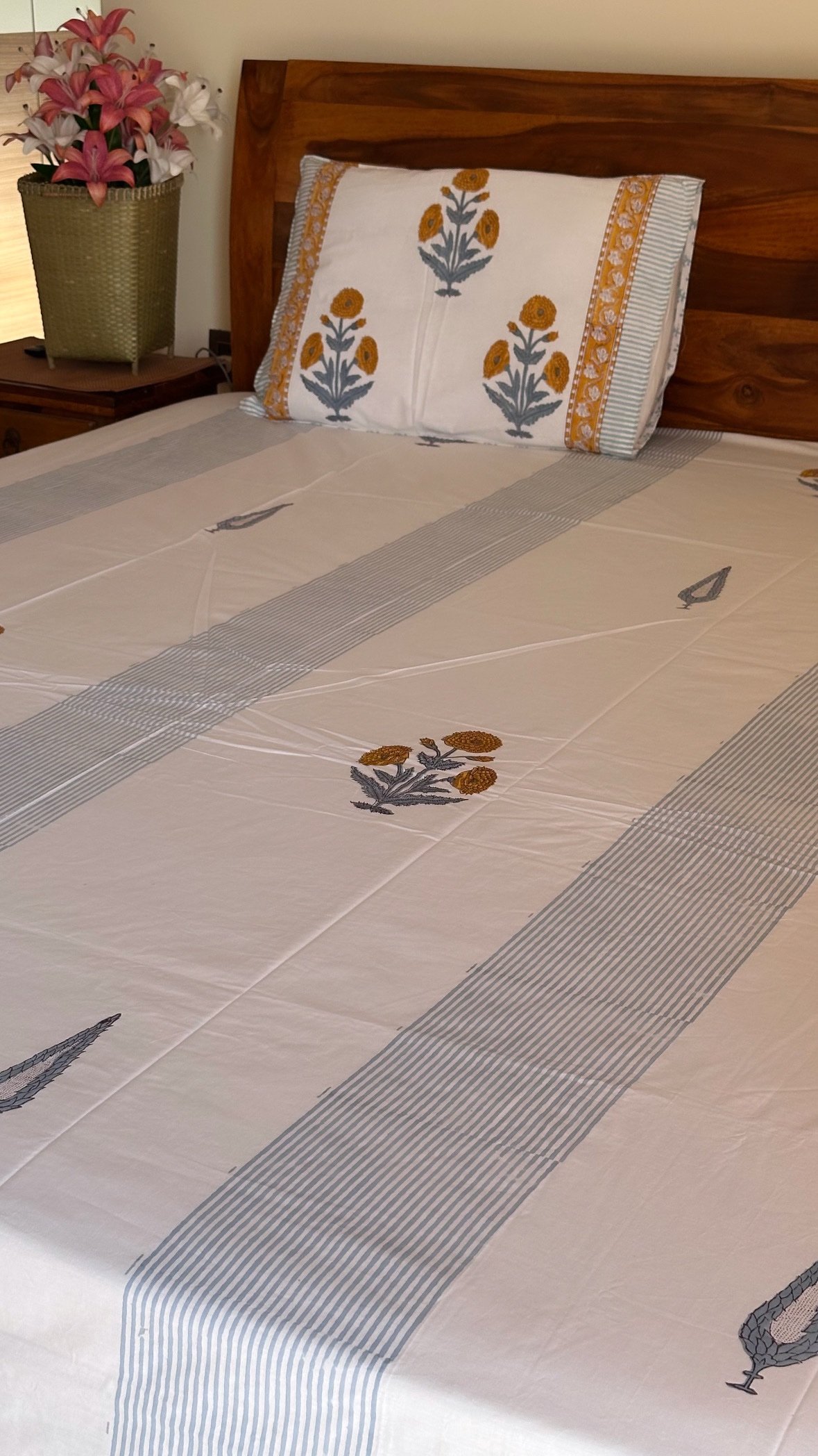 Green-Yellow Phulwari King Size Cotton Bedsheet