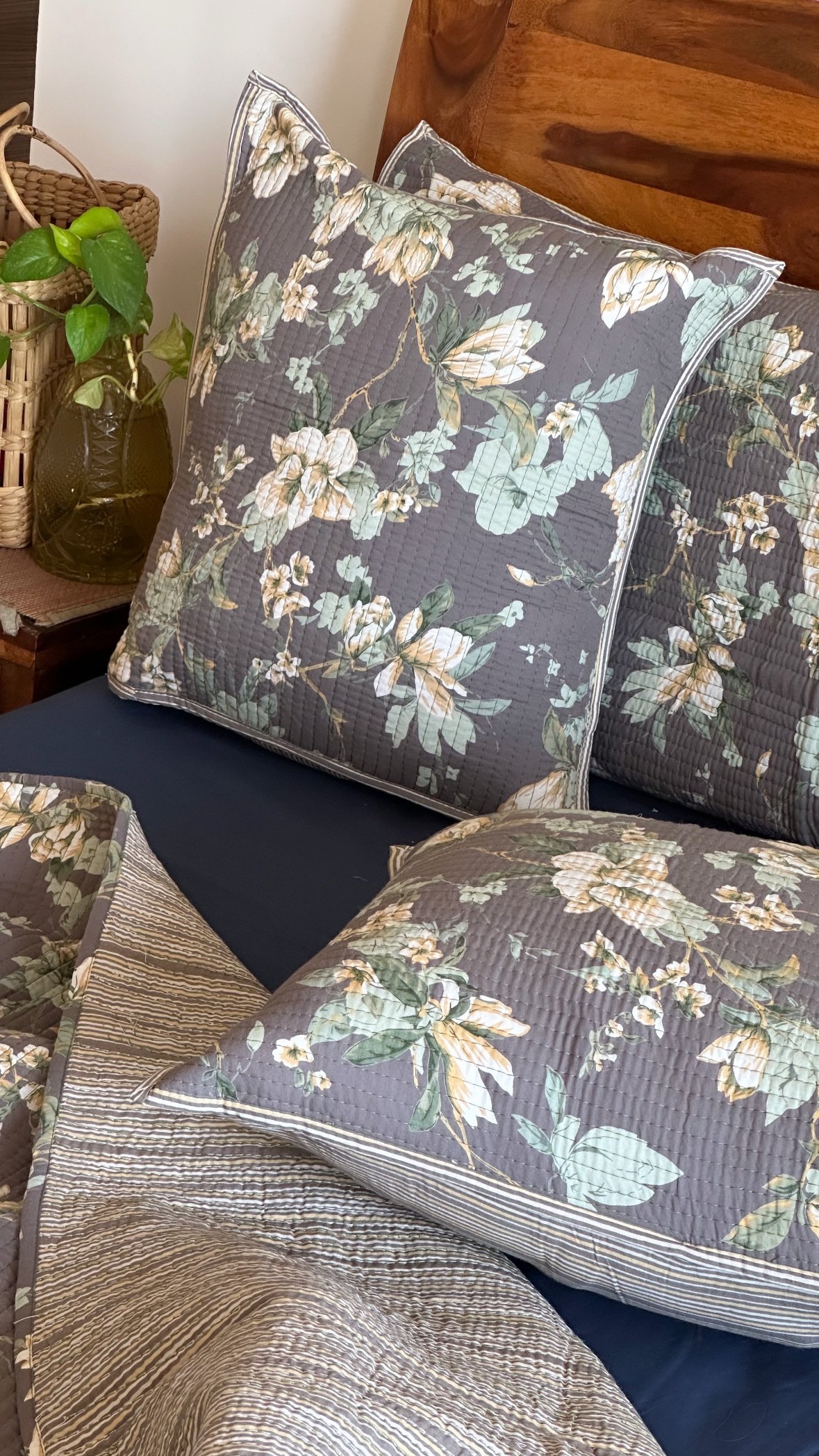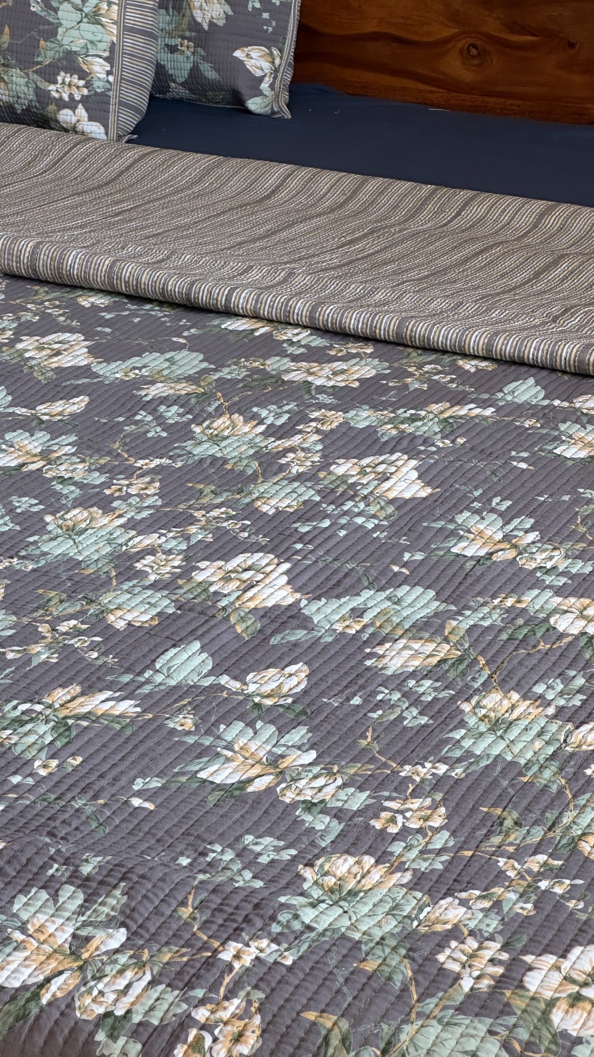 Experience ultimate comfort and elegance with our organic pure cotton reversible quilt cum bedcover paired with a matching exquisitely soft pillow & cushion covers.