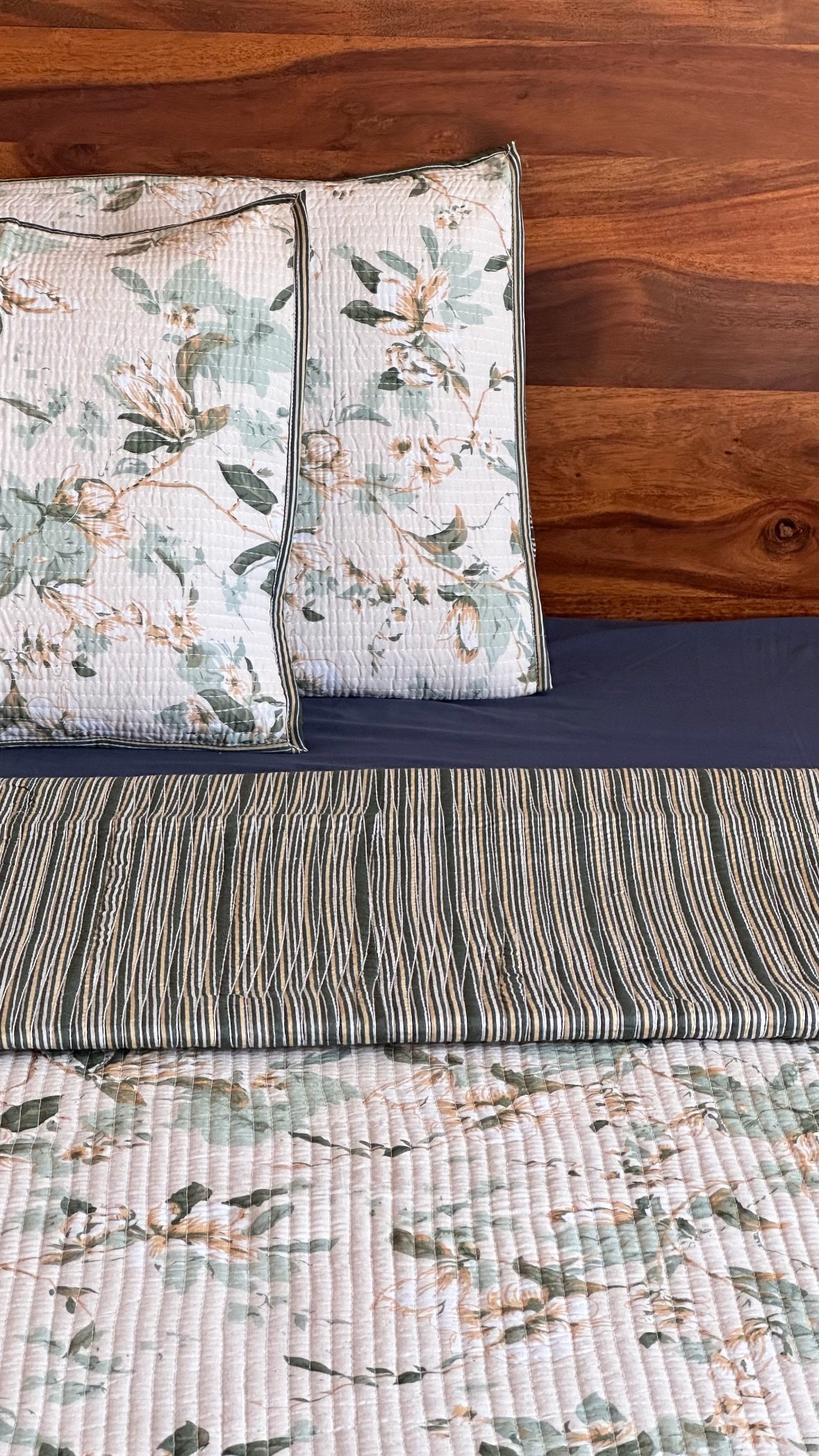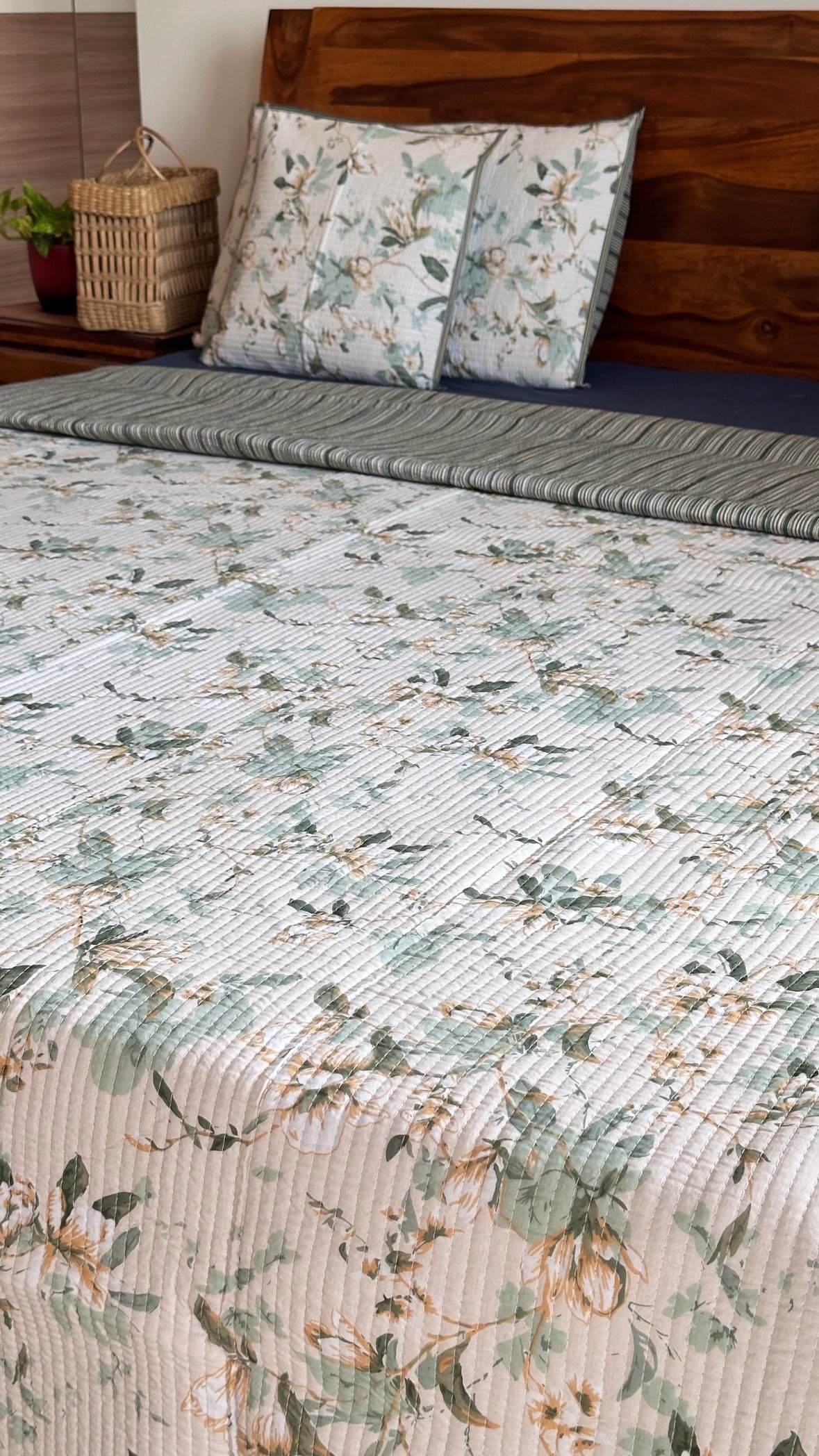 Package Includes – One King Size Premium Reversible Bedcover with Two Quilted Pillow Covers and Two Quilted Cushion Covers[16×16”].