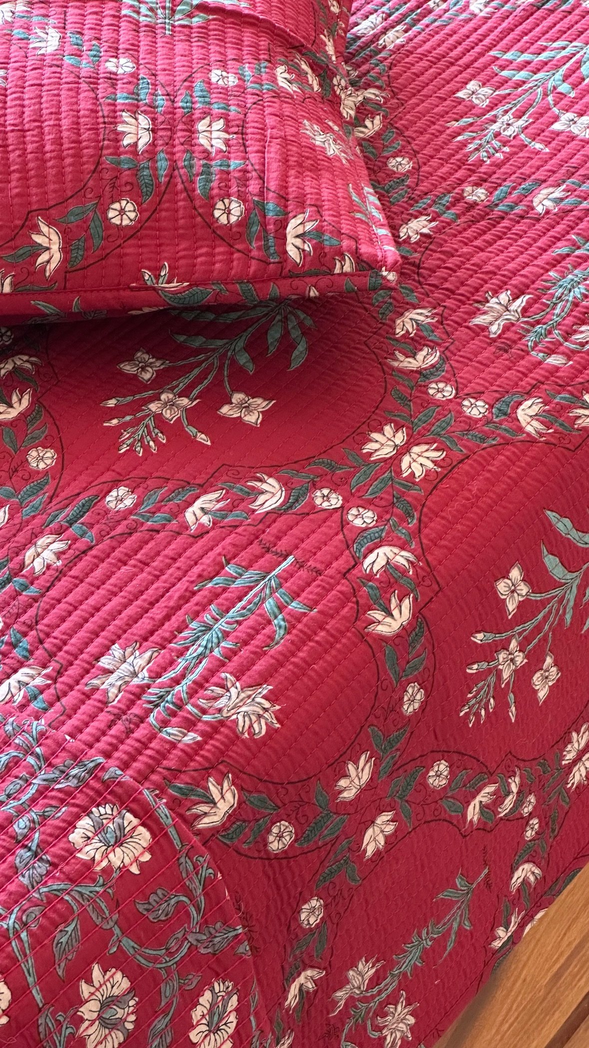 Experience ultimate comfort and elegance with our organic pure cotton reversible quilt cum bedcover paired with a matching exquisitely soft pillow & cushion covers.