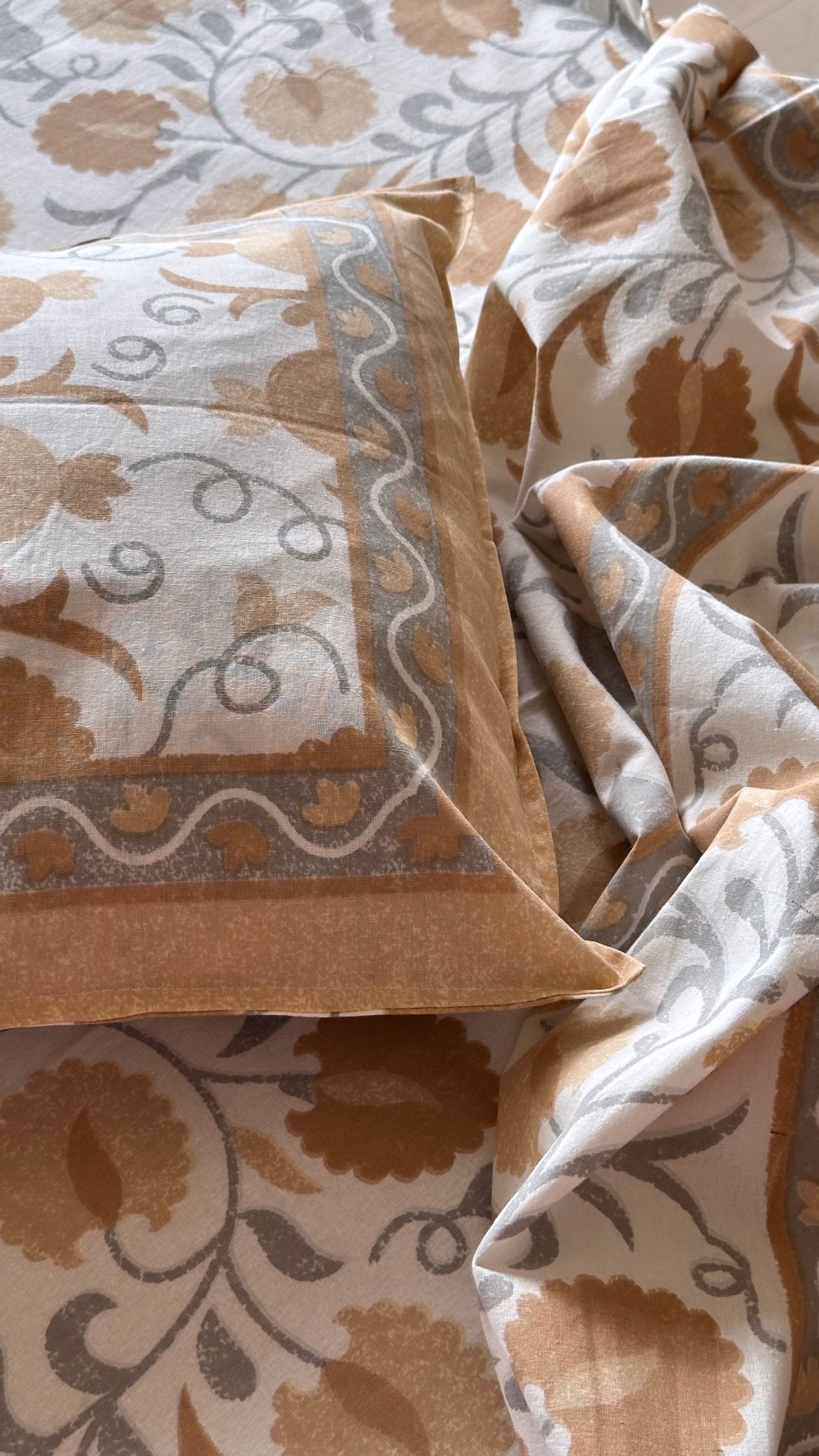 Green-Yellow Phulwari King Size Cotton Bedsheet