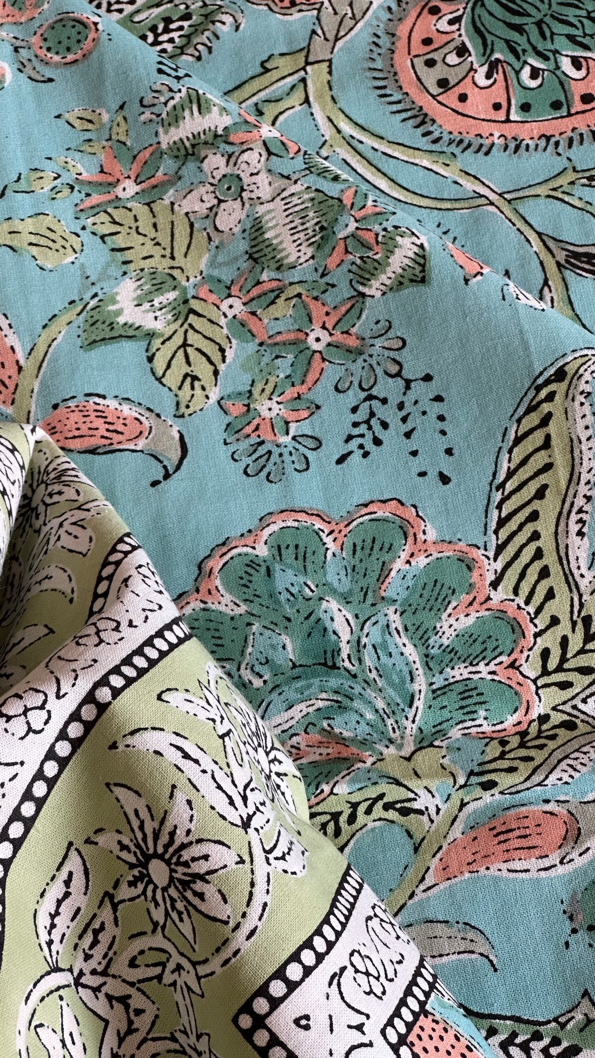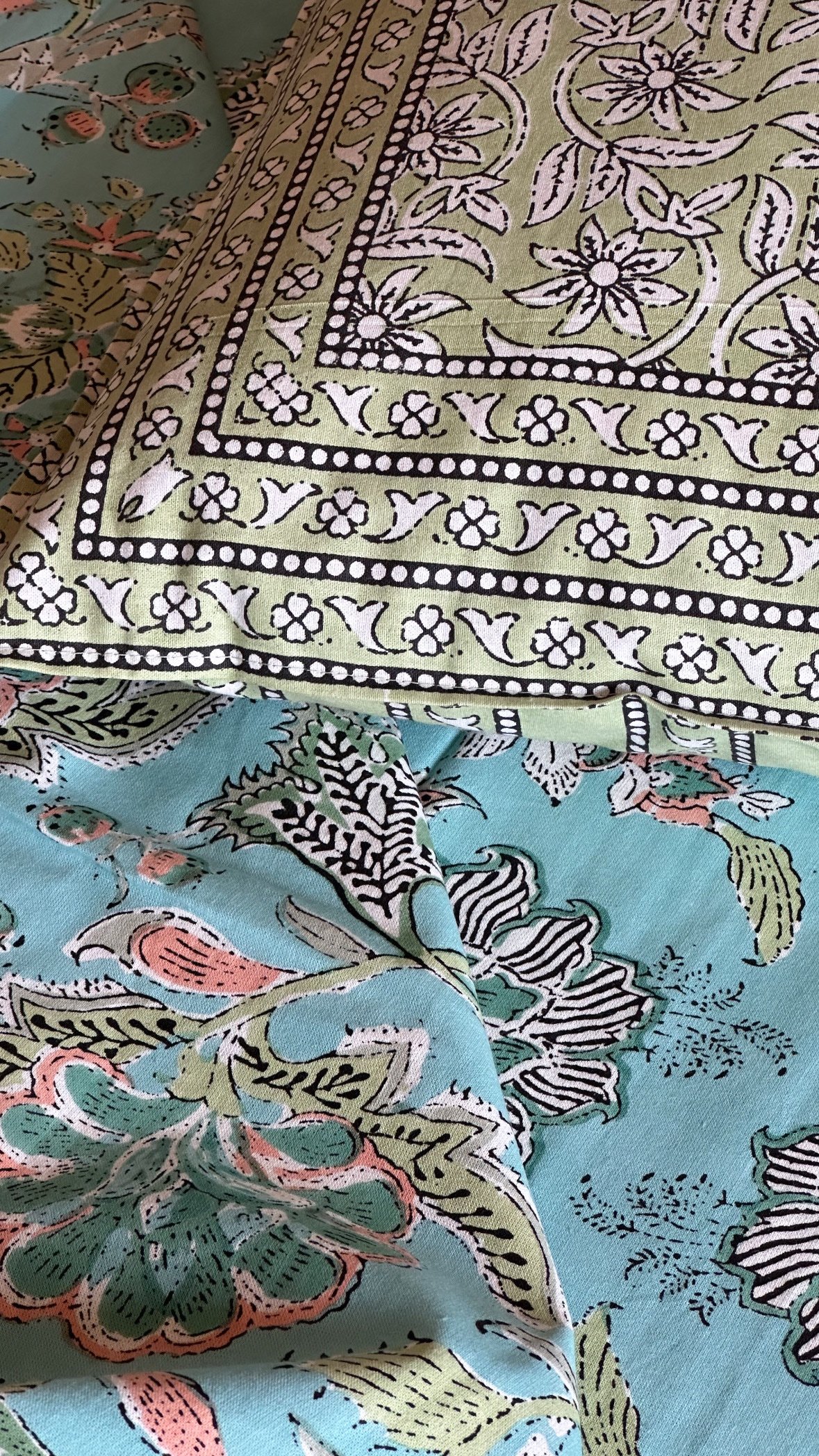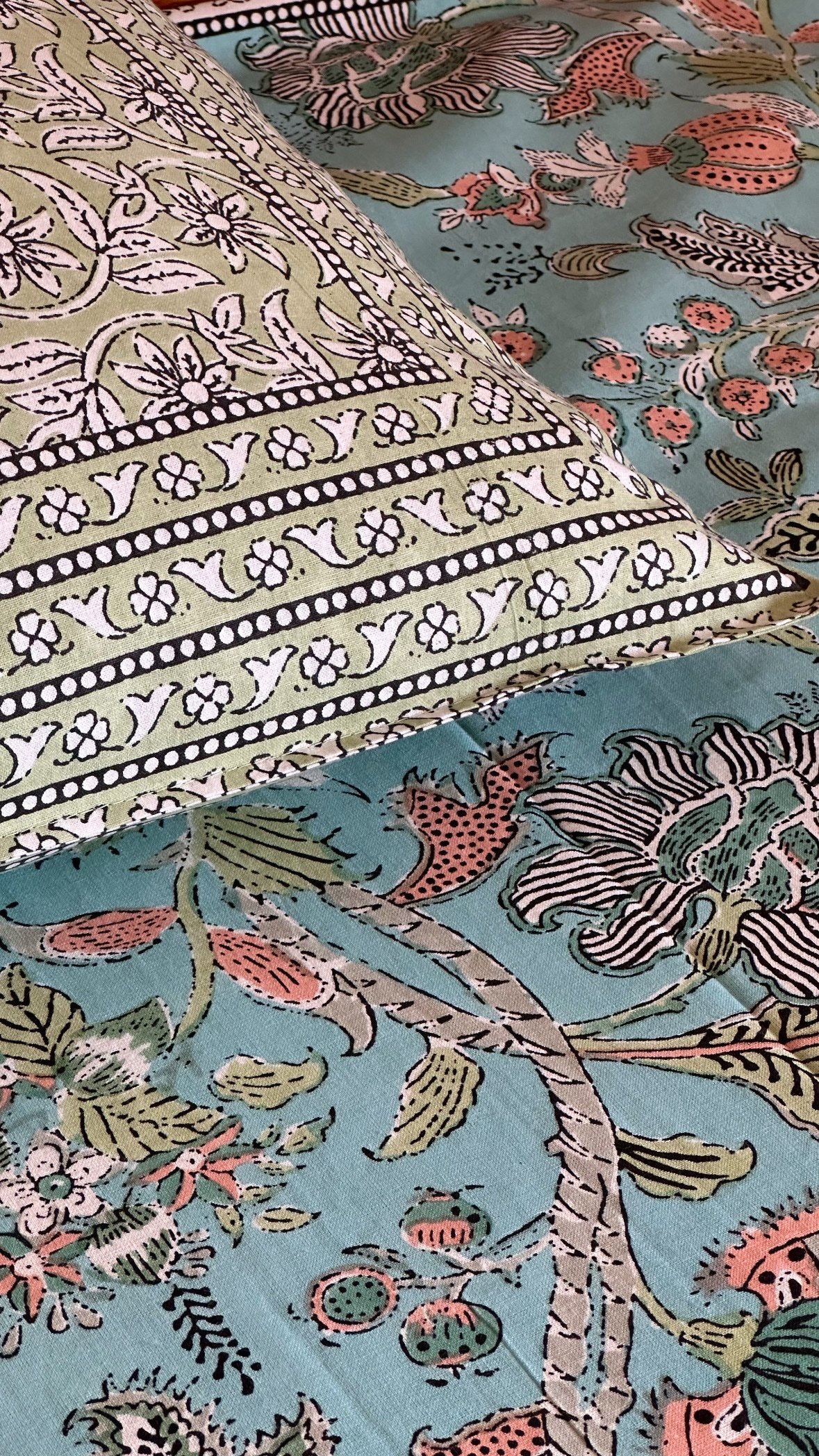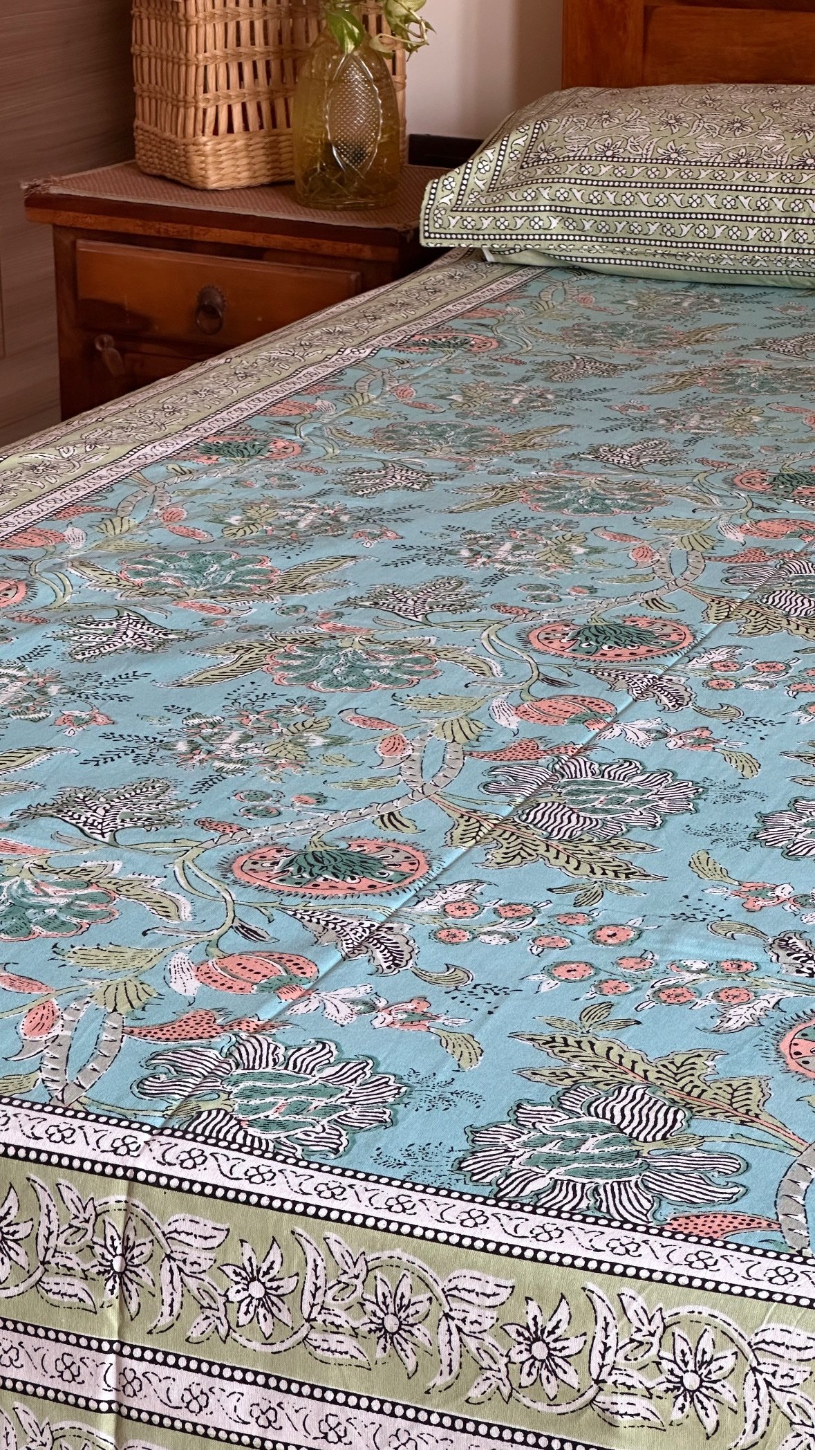 Grey-Blue Phulwari Super king Size Cotton Bedsheet